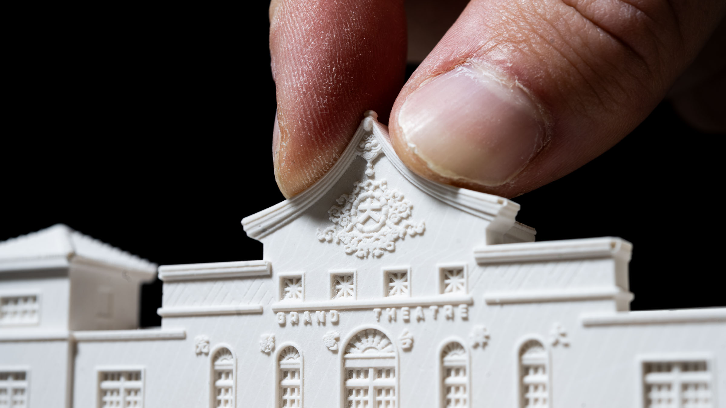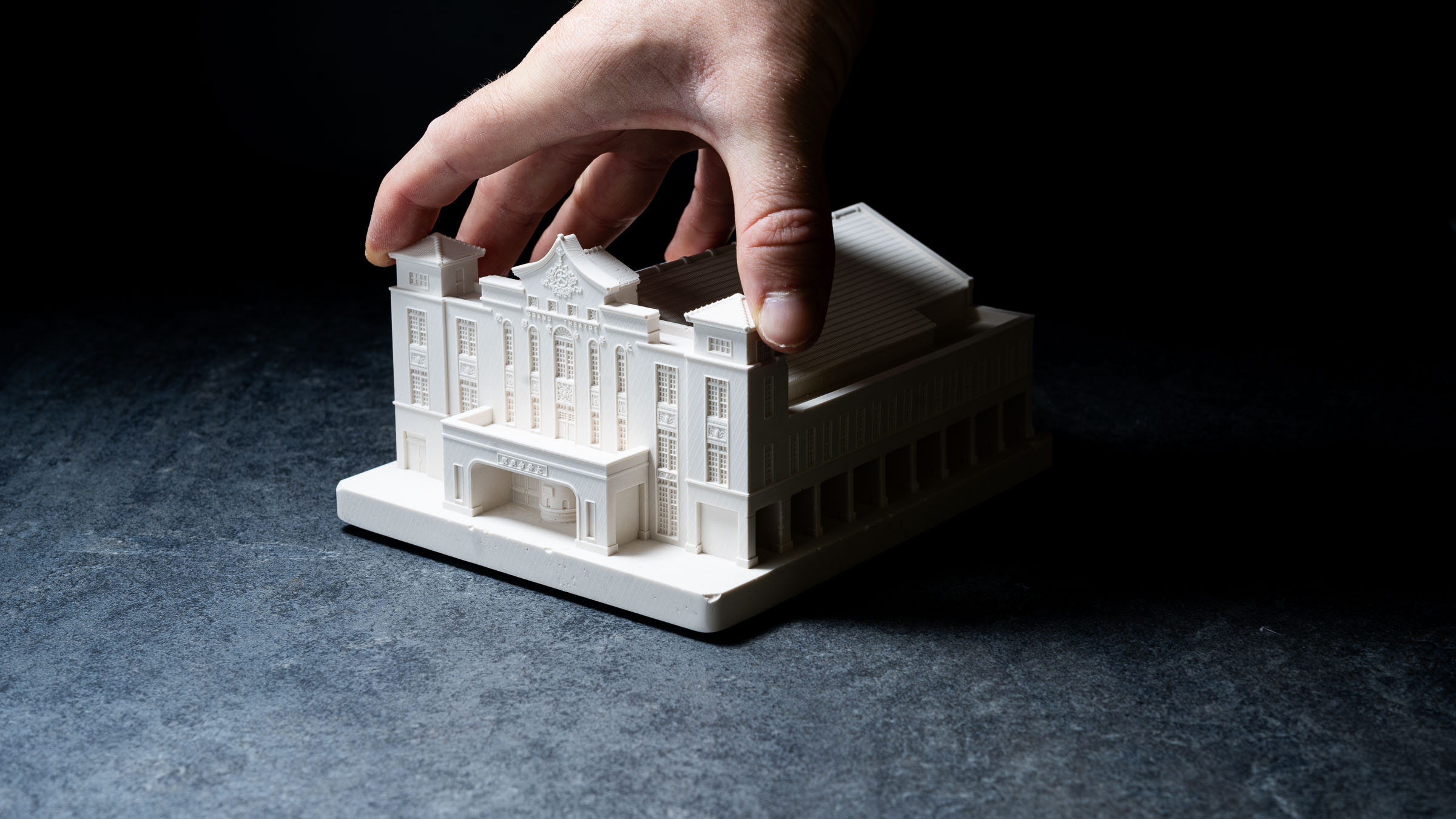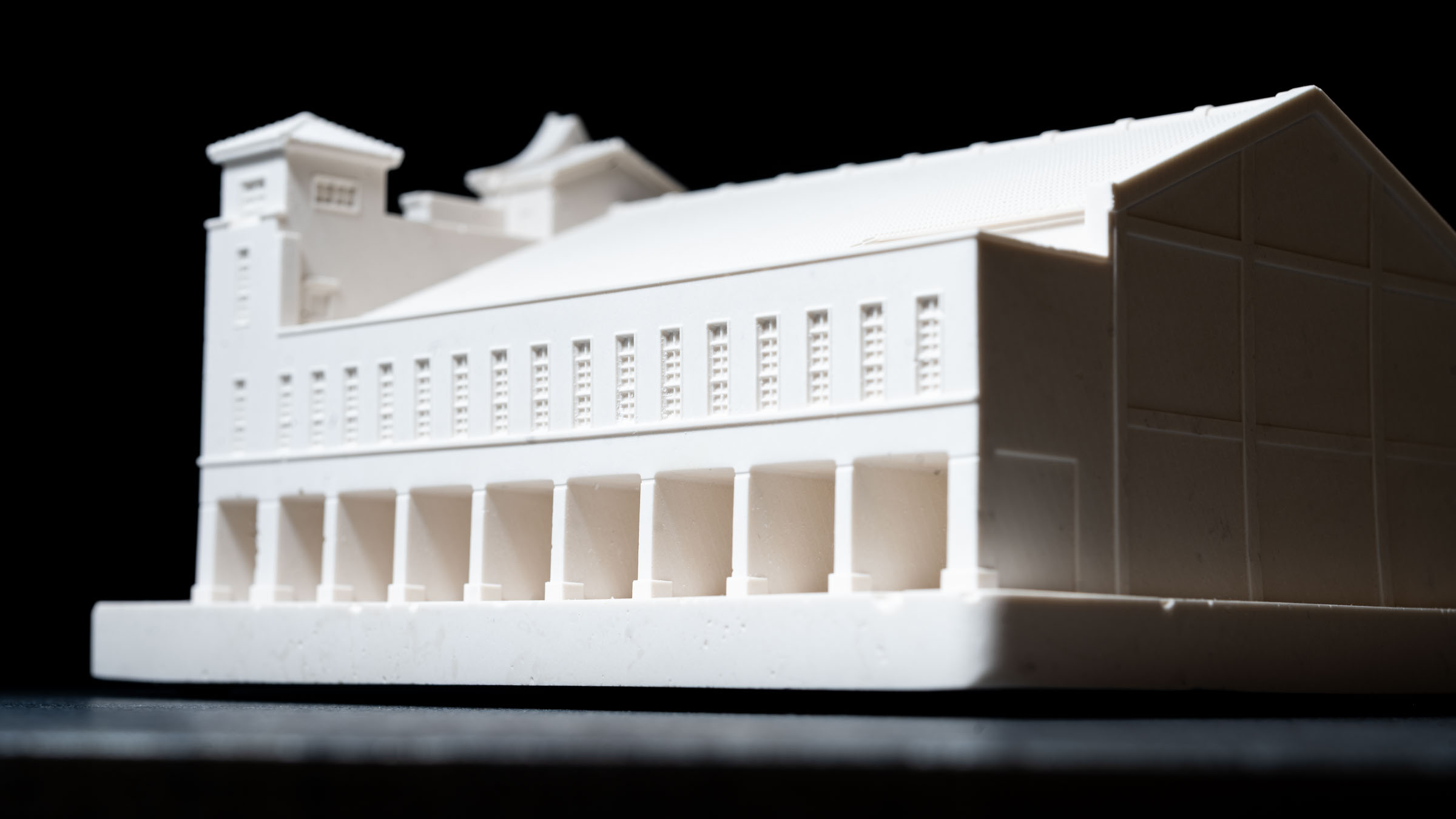 3D miniature architectural model, hand-cast from acrylic-reinforced plaster.